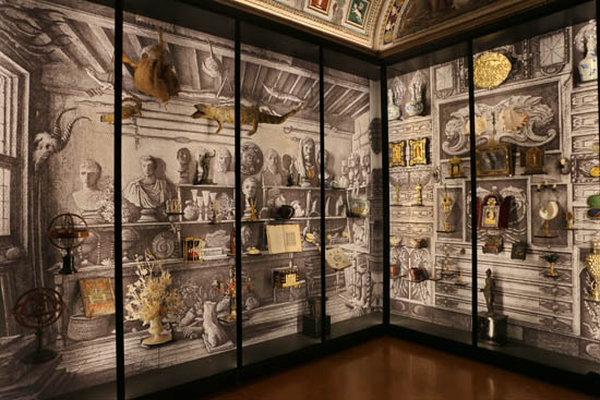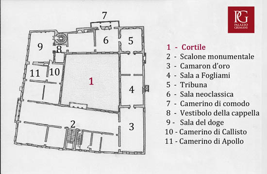 A palotán belül a Camerino di Callistót és Camerino di Apollót tartják Giovanni Grimani egykori privát studiolójának, ahol gyűjteménye egy részét is tarthatta – talán a gemmákat, illetve a természeti kuriózumok olyan véletlenszerű példáit, amelyeket e korban még nem szerveztek önálló Wunderkammerré. Itt és az innen nyíló termekben – a Sala del Dogében, a palotakápolnában és a mellette lévő teremben – rendeztek be egy kettős kiállítást, egy olyan Kunst- és Wunderkammert, amely itt sosem volt, de lehetett volna, mint ahogy volt is számos 17. századi palotában Velencében és másutt.