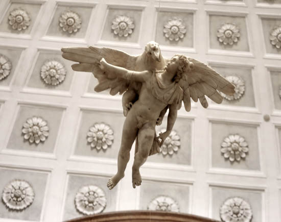A legmeghökkentőbb módon elhelyezett szobor a Kr.e. 2-1. századi Ganymedes elrablása, közvetlenül a kupola nyílása alá felfüggesztve, mintha a sas azon keresztül röppent volna le, hogy az ifjú pohárnokot felvigye Zeuszhoz