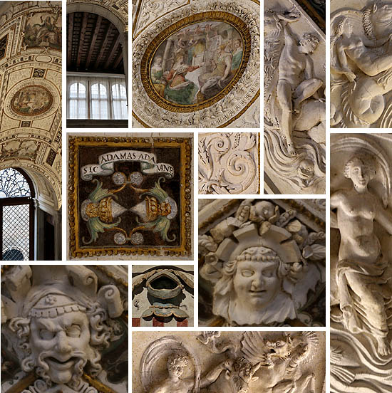 A reneszánsz építészetelméletírók az 1400-as évek közepétől hangsúlyozták, hogy igazi humanistának szüksége van egy studiolóra, dolgozószobácskára, ahol az ókori és keresztény szerzőkkel konzultál, s ahol a természet és az emberi mesterség válogatott csodáit elhelyezi a maga és látogatóinak gyönyörködtetésére. Hogy ezek a csodák miben álltak, arról külön előadást tartottam, s meg is írom majd posztban is. Annyi bizonyos, hogy első körben az antikvitás előkerült emlékein volt a hangsúly, a szobrokon és a vésett ékköveken, gemmákon. Ezeket gyűjtötte Grimani pátriárka is, s gyűjteményét a palota nyugati, a vendégek számára nyitva álló szárnyában állította ki (az alaprajzon 3-5. termek).