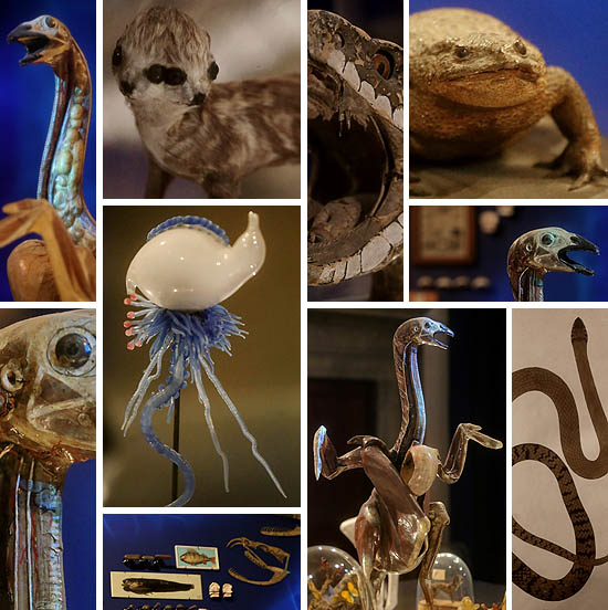 A kiállítás első részében velencei és más múzeumokból összeválogatott tárgyakból konstruáltak meg egy eredetinek ható csodakamrát. Az artificiáliákat többek között Tiziano, Giambologna, ifjabb Brueghel, Veronese művei, ötvöstárgyak, intarziás kabinetek, arany automaták képviselik, s mindezt Grimani pátriárka kritikus tekintete szemléli a falról, Jacopo és Domenico Tintoretto által festett portréjáról. A naturáliák háttere egy Wunderkammert ábrázoló 17. századi metszet, amelynek mintegy grisaille tárgyai közül lépnek ki a színes preparátumok, korallok, kagylók, halak, és természetesen a krokodilok, minden csodakamra elengedhetetlen kellékei.