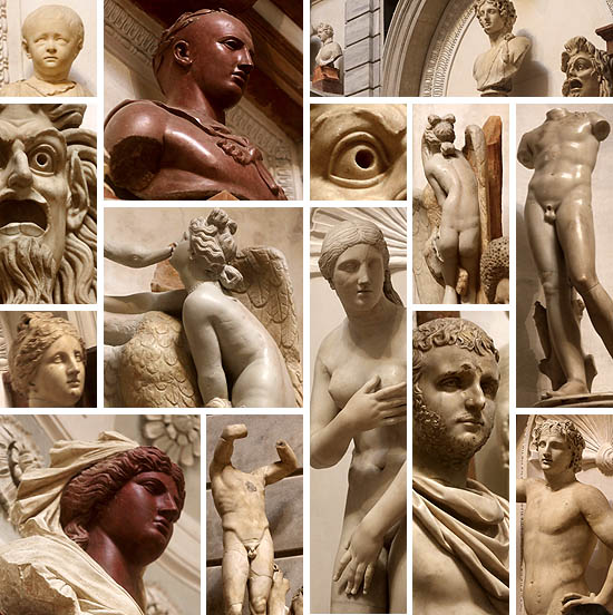 A legmeghökkentőbb módon elhelyezett szobor a Kr.e. 2-1. századi Ganymedes elrablása, közvetlenül a kupola nyílása alá felfüggesztve, mintha a sas azon keresztül röppent volna le, hogy az ifjú pohárnokot felvigye Zeuszhoz