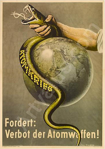 John Heartfield (szül. Helmut Herzfeld, Bertold Brecht díszlettervezője): Követeljétek az atomfegyverek betiltását, 1955