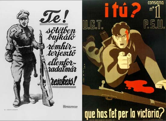 Az első világháborús angol és amerikai toborzóplakát zseniális motívumát mások mellett az oroszok is felhasználták az 1917 és 1921 közötti polgárháború idején, mégpedig a fehérek éppúgy, mint a vörösök. Érthető módon nem a két alábbi fehér, hanem a Dmitrij Moor által 1920-ban rajzolt vörös változat („Te feliratkoztál önkéntesnek?”) vált éppolyan ikonikussá a Szovjetunióban, mint az eredeti változat Amerikában, olyannyira, hogy Moor a nagy honvédő háború idején új változatot rajzolt belőle „Te mivel segíted a frontot?” felirattal. Ezért aztán a Gorbacsov-féle 1985-ös antialkoholista kampány idején ennek meggyőző erejéhez folyamodtak a kampány „Mondj nemet az italozásra!” vezérplakátján. És ez a plakát szülte Gleb Androszovnak azt a népi ellenplakátját, amely az orosz alkoholisták örök kérdését szegezi szembe a nézővel: „Tisztelsz te engem?” [mert ha igen, akkor iszol velem.]