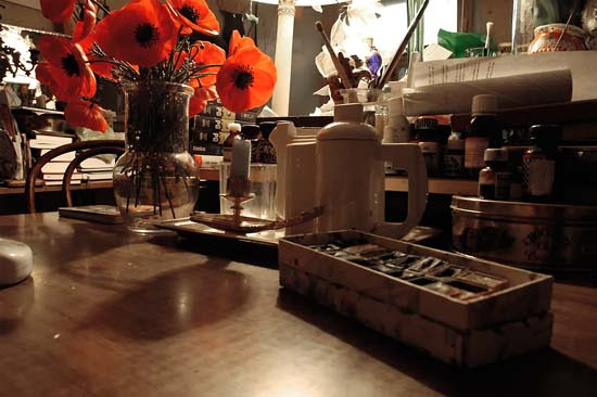 Rusztam Hamdamov festménye, amelyen stúdiójának néhány tárgyát is megörökítette.