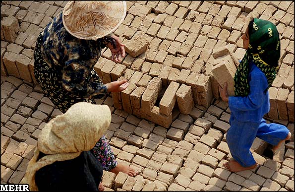 Abotaleb Nadri pedig a Gorgan környéki téglavető falvak gyerekeiről készített fotósorozatot. A nagyon magasra emelt perspektíva arra emlékeztet, ahogyan Samira és Hana Makhmalbaf vagy Majid Majidi filmezik felülről gyerekszereplőiket, képileg is hangsúlyozva kiszolgáltatottságukat.