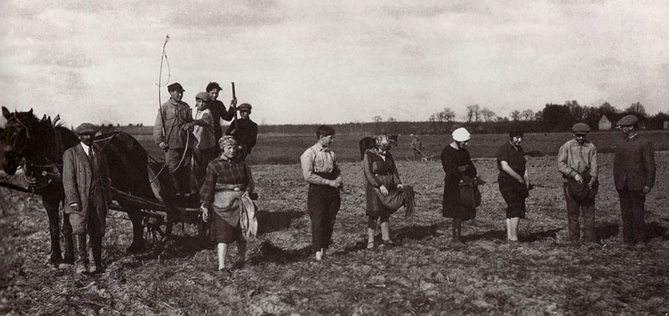 „Purisov (Parysów, Lublin megye), 1927. Eszter munkában. Férje hét éve magára hagyta öt gyerekkel, akiket fehérvarrónőként tart el.”
