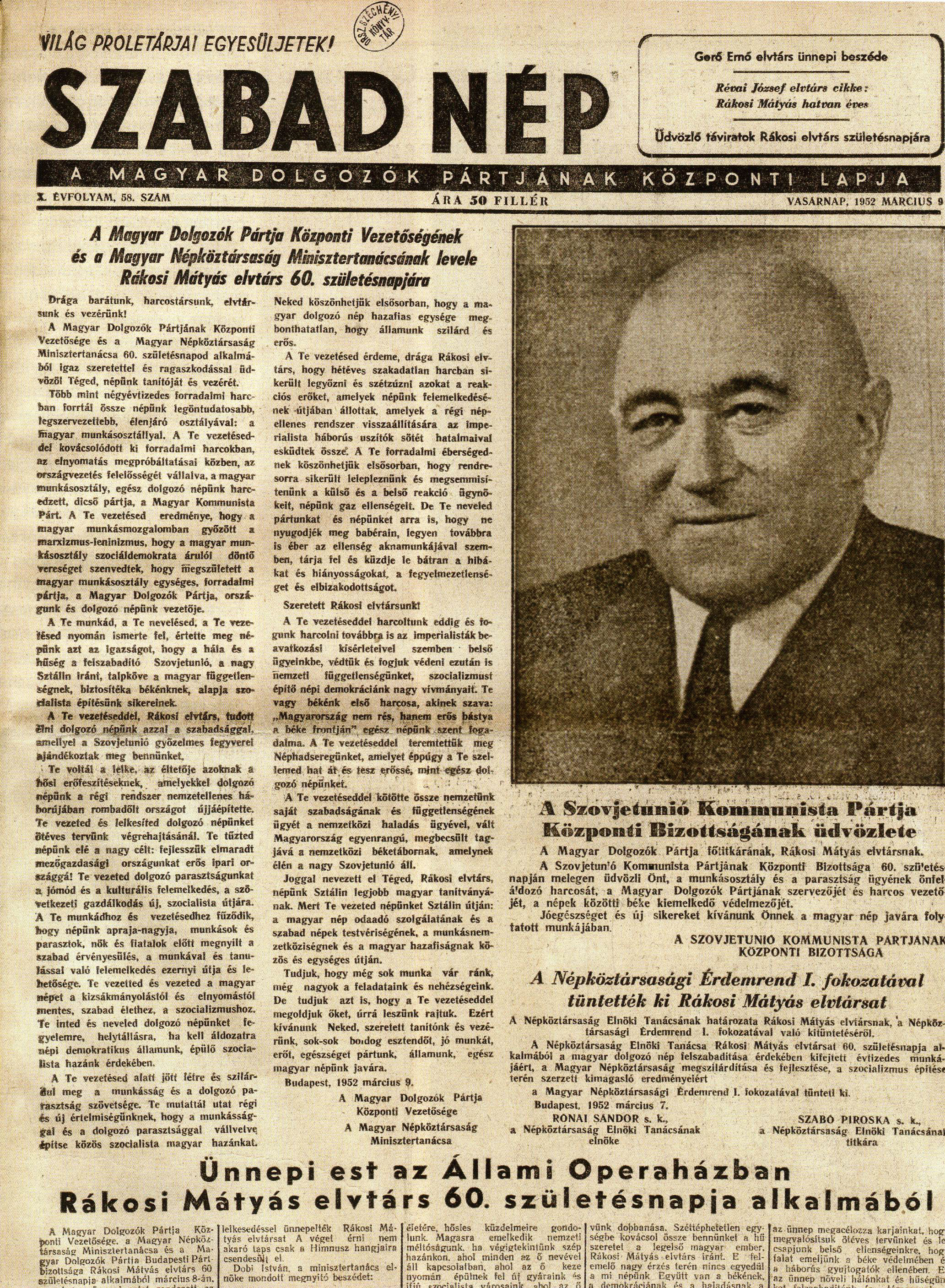 Hatvan évvel ezelőtt ünnepelte az ország a hatvanadik évfordulóját egy olyan nagyszabású eseménynek, amelyben megtörténtekor még senki nem látott semmi rendkívülit: egy kis bácskai faluban megszületett Rákosi, akkor még Rosenfeld Mátyás.