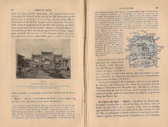 Az Európán kívüli világ emblematikus épületeinek bemutatása az ókor óta kötelező passzusa az Ázsia-leírásoknak. A kínai nagy falat „a Krisztus előtti 3. században építették a nomádok támadásai ellen, s első ízben csupán 1644-ben törték át a mandzsuk, akik a hírneves Ming dinasztiát felváltva ma is a császári trónon ülnek”. A könyvet 1907-ben adták ki. 1912. októberében azonban már senki nem ül a császári trónon: az utolsó császár, Puyi az év február 12-én mondott le, hat éves korában. A könyv egymás mellett közli a Tiltott Város egy képét és alaprajzát, ugyanazt az alaprajzot, amelyet Victor Segalen is beemelt 1913 és 1914 között írott kínai regényébe, a René Leys-be, melynek főhőse, a poliglott belga kamasz, René Leys arról ábrándozik, hogy a kínai titkos rendőrség tagja lesz, mandarin, az arisztokrácia tagja és a császárnő szeretője, mígnem végül valóban sikerül behatolnia a palotába, ahol összeroppan saját képzeletének súlya alatt. Az elkövetkező években azonban egyetlen gimnazista sem olvashatta a René Leys-t a Somme és Argonne közötti front tűzszünetében, mert a mű csak 1922-ben jelent meg először nyomtatásban. Képzeletük kénytelen volt beérni ezekkel a kicsi és néptelen képekkel, már ha nem találkoztak olyan korábbi fotográfiákkal, amelyeket kínai utazók, kalandorok és misszionáriusok készítettek, amikor René Leyshez hasonlóan a mandarinok közelében éltek.