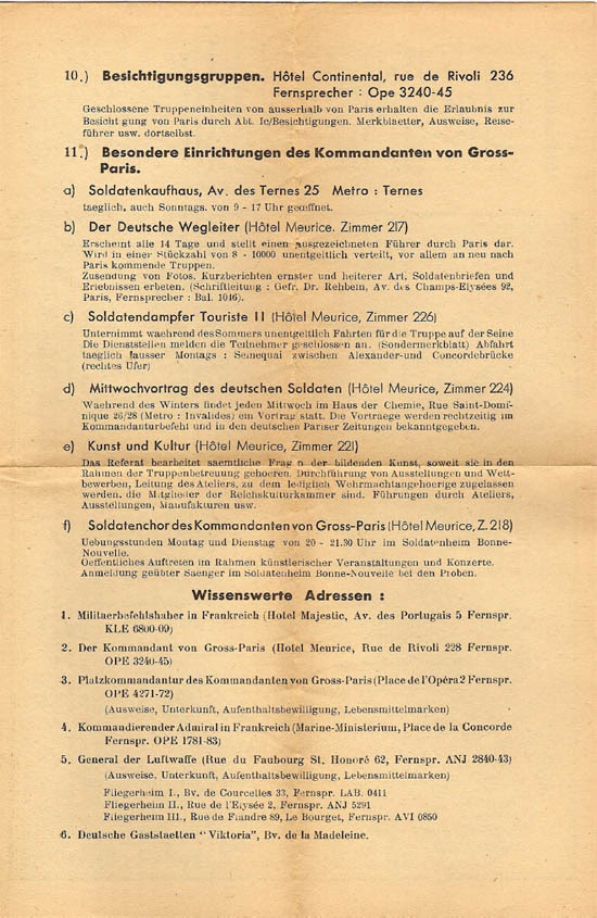 Ugye emlékszünk még katonakorunkból a betétlapra, amelyen fel volt tüntetve, mely szórakozóhelyek látogathatóak a nagykanizsai Dózsa laktanya körzetében? A német katonákat is ellátták ilyen jegyzékekkel, amelyek előírták, mely kávézókat, mozikat és bordélyokat látogathatnak, s a Soldatenkaffee Madeleine a Rue du Faubourg Saint-Honoré 9 szám alatt (U-Bahn Concorde) ezek között előkelő helyen szerepelt.
