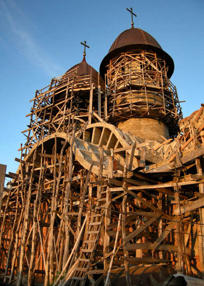 Nem. Sokkal inkább olyan spontán népi konstrukció, amely minden előzetes átfogó terv nélkül, lépésről lépésre alakul ki és terebélyesedik el helybéli iparosok keze nyomán, akiknek a sosem látott léptékű megbízás lehetőséget ad rá, hogy megéljék a bennük rejlő gyermeket. Mint az Ukrajnában látott vasbeton templom posztmodern konstruktivista zsaluzata.