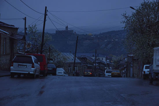 Fiúk, kisfiúk, öregek. Gyalogosok. Turistakávézó. Cigaretták. Ugyanazok a férfiak, mint az imént, „რაბათი?” „აქედან”. A negyedben vagyok. Egy fiú kijön egy üzletből. Rámnéz. Rámnéznek. Tufa házak. Fáradt házak. Régi házak. Egy Mercedes. Kiteregetett ruhák. Hulladékok, deszkák, gumiabroncsok. „Nagy földcsuszamlás.” Rabati. Ez Rabati. Ezek Rabatik. Veszteség. Öreg nők, örmények. „ԲարևՁեզ ქალბატონო, ექლესია, სად არის?”, „იქააა”, dallamosan.