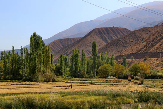 Megállunk a folyó fölött, fényképezzük a teraszok szintvonalai által kirajzolt hegy- és vízrajzot. Az alig egy hektárnyi birtokon arató gazda udvarias gesztussal invitál, jöjjünk le, onnan sokkal jobban látszanak a hegyek. A rizst sarlóval aratják, a sah korából származó cséplőgépet dízeles kapa motorja hajtja, a kicsépelt rizsszalmát szamárháton szállítják a hegyoldalban kapaszkodó faluba. A falu elején teherautó áll, körötte nagy tömeg: megérkezett a heti gázpalack-szállítmány. Öregasszonyok, öregemberek a hátukon cipelik fel a gázpalackokat a meredek utcákon: a munkára fogható kezek és a teherhordó állatok most mással vannak elfoglalva odalent a völgyben.