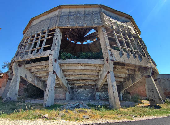 A Cirku képét először egy olasz urbex-oldalon láttam. Ahogy az urbex-oldalakon szokás, semmi pontos információ nem volt róla, csupán annyi: „Brutalista cirkusz Albániában.” De nem tellett sokba rátalálni, hogy a betonváz a dél-albániai Patos városkában áll, Apollonia ókori város romjaitól nem messze. Minthogy albániai utunk amúgy is arra vezetett, megbeszéltük, hogy tartunk egy megállót Patosban.