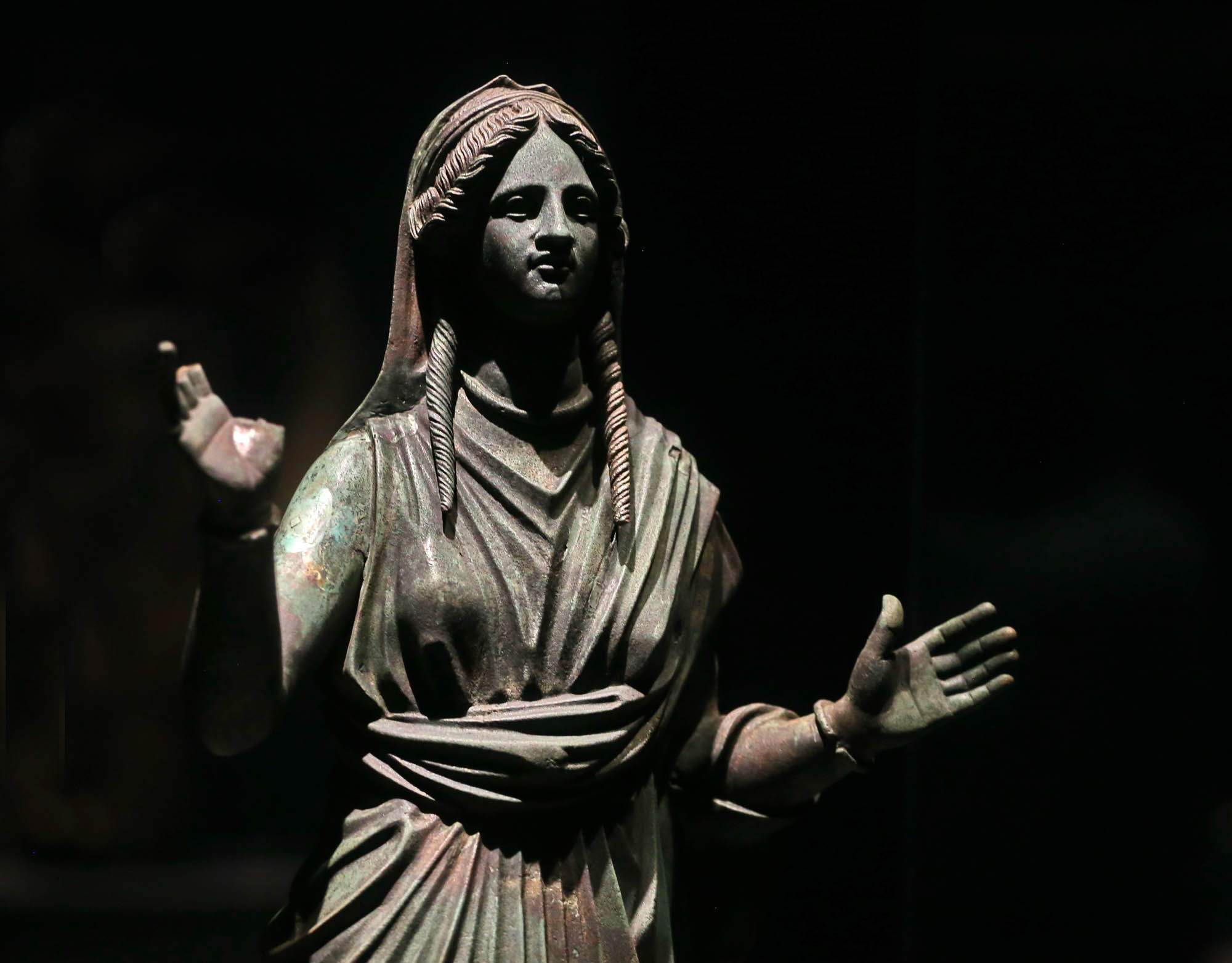 Hogy az imént látott etruszk votív figurákat hogyan használták a maguk idejében, azt jól illusztrálja egy új kiállítás a berlini James-Simon-Galerie-ben, amely az utóbbi évek egyik szenzációs etruszk leletét, a san cascianói bronzokat mutatja be.