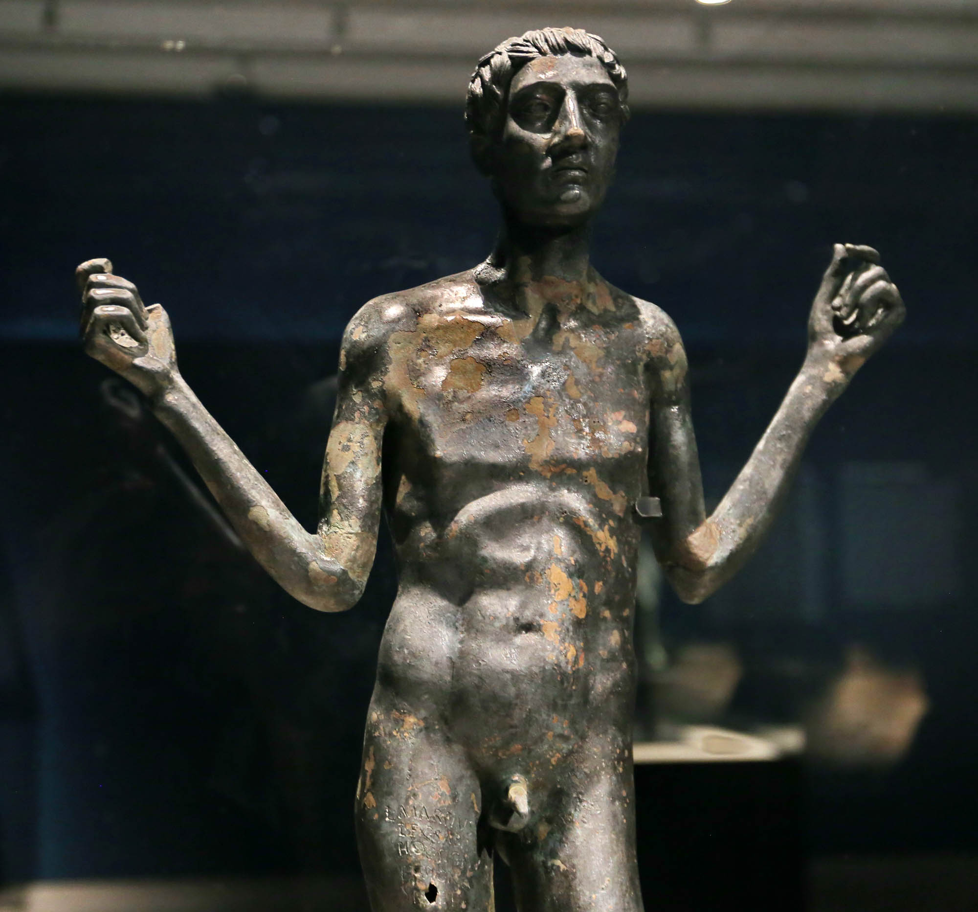 Egy kisfiú ma is forgatható gömböt tart a kezében. Ilyen gömb szobor nélkül is fennmaradt a leletek között
