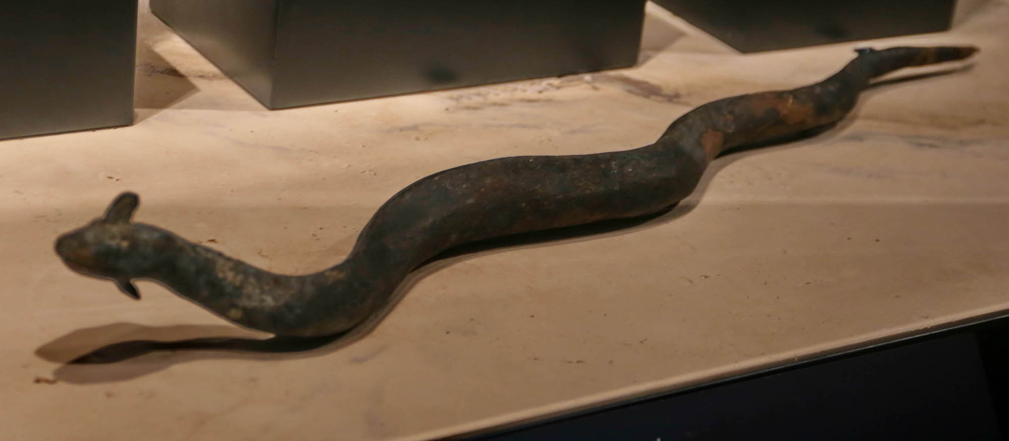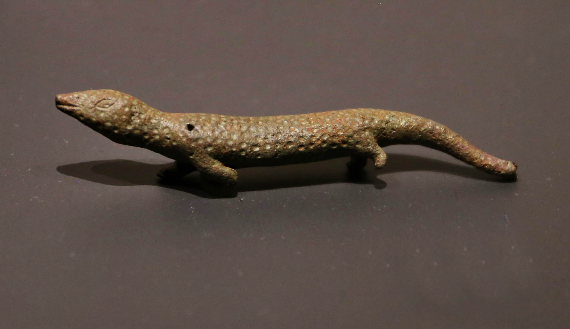 Állatszobrocskákat is találtak, többek között gyíkot, a betegség jelképét, hogy Apollo Sauroktonos, a Gyíkölő Apolló végezzen vele. És a legalsó rétegben egy kígyó bronzszobrát is, amely valószínűleg a szent forrás őrzője volt.